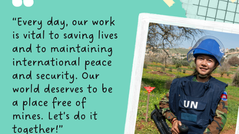 بصفتنا نازعات ألغام وعاملات في حفظ السلام، نلعب دورًا حيويًا في عائلاتنا ومجتمعاتنا في إظهار المساهمات التي تقدمها النساء نحو السلام والمساواة بين الجنسين. "