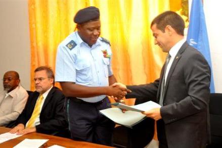 01 July 2014 - The Pubic Order Police Anti-Disturbance Unit (POP, Portuguese acronym) today received at UNIOGBIS HQ, Bissau, a donation of 50 sets of police anti-riot gear - shields, helmets and batons.UNIOGBIS has been…