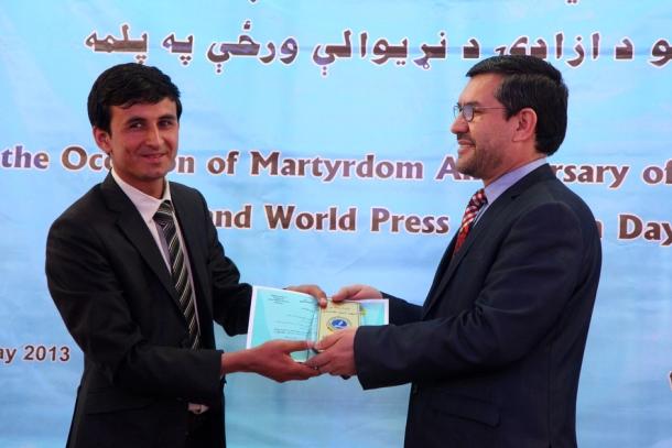 KABUL - Ahead of the World Press Freedom Day that falls on 3 May, an Afghan journalists union honoured two journalists yesterday with this year’s Ajmal Naqshbandi Media Award, named after a journalist killed in 2007 by the…