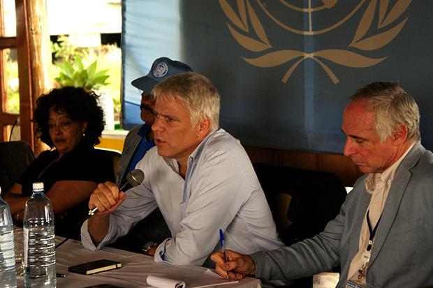 Mr. Christian Roner explaining UNIFIL’s solar farm project to Mr. Ragheb Alama.