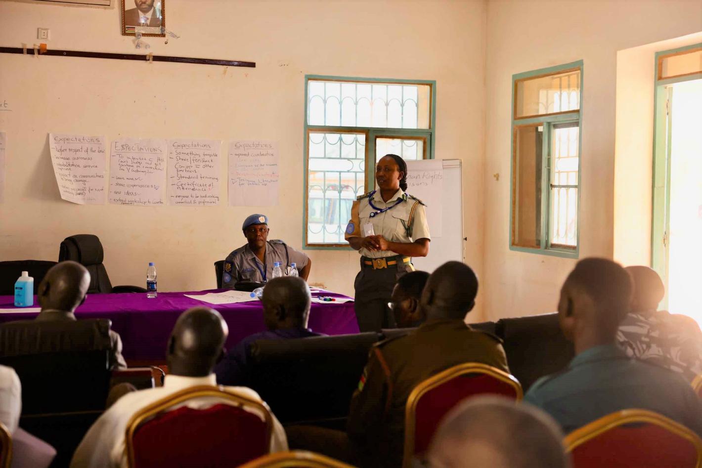 In Kuajok, more than 40 public prosecutors, justice actors, and law enforcers from the South Sudan National Police Service, the Corrections Service, the High Court, and local government actors came together in a three-day workshop facilitated by UNMISS. Photo by Zejin Yin/UNMISS